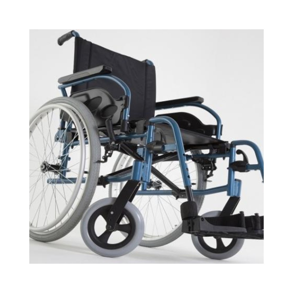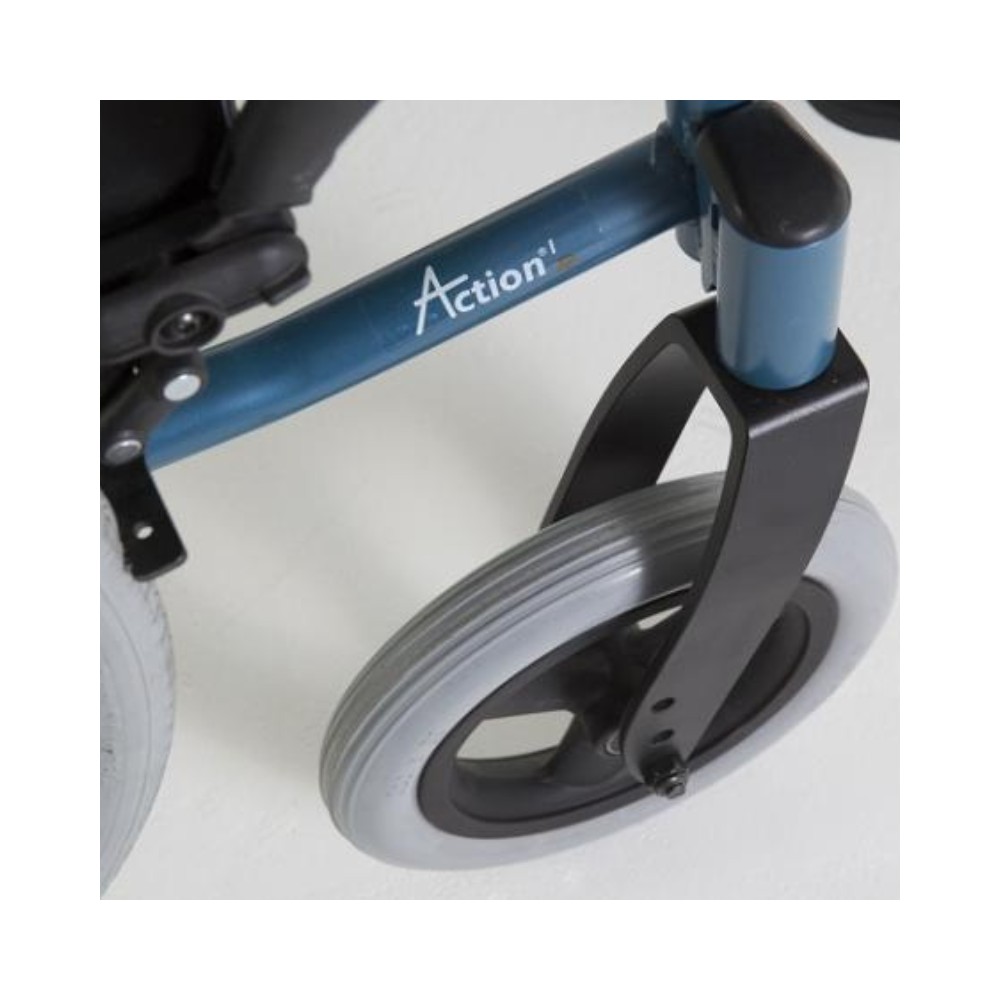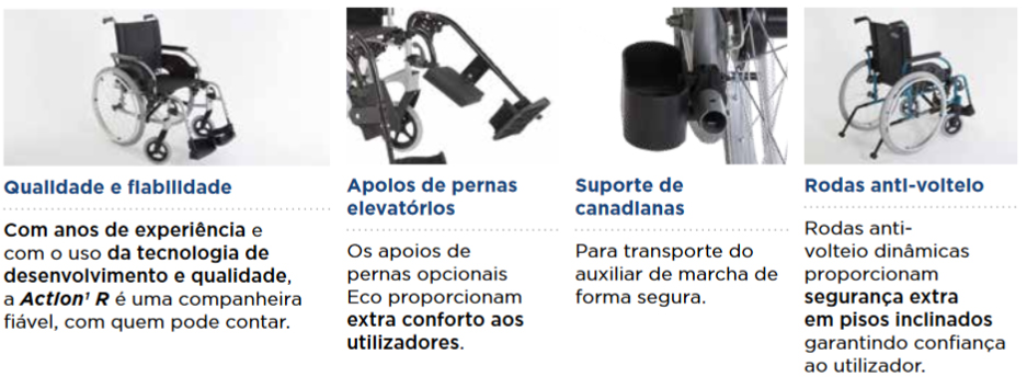 vários anos de experiência interna, a Action1 R está disponível em três versões: auto-propulsão com roda traseira raiada pneumática ou maciça e aros motores em alumínio; e uma versão de trânsito com rodas traseiras de 12”.