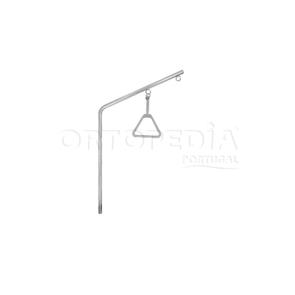 Coluna de apoio para camas hospitalares com triângulo de apoio com fita regulável em altura.
