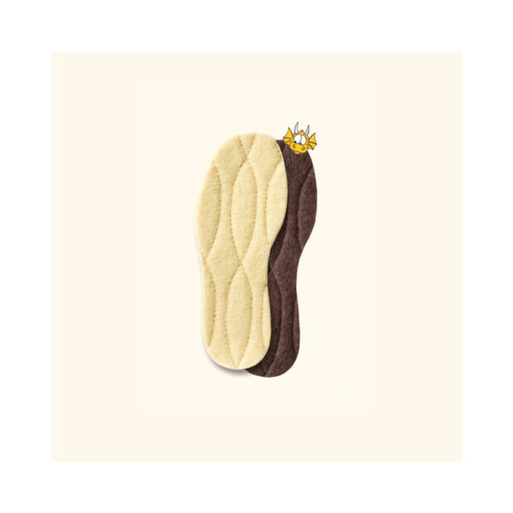 Nem todas as palmilhas são iguais - as palmilhas de inverno pedag® Keep Warm Kids são muito especiais porque são naturais: a parte de cima é feita de lã de cordeiro 100% crua e natural. No meio, uma camada de cortiça isolante - também um produto natural - garante que o frio não chegue aos pés, mas que o calor seja retido. O feltro de juta durável complementa o bloqueio natural contra pés frios.
